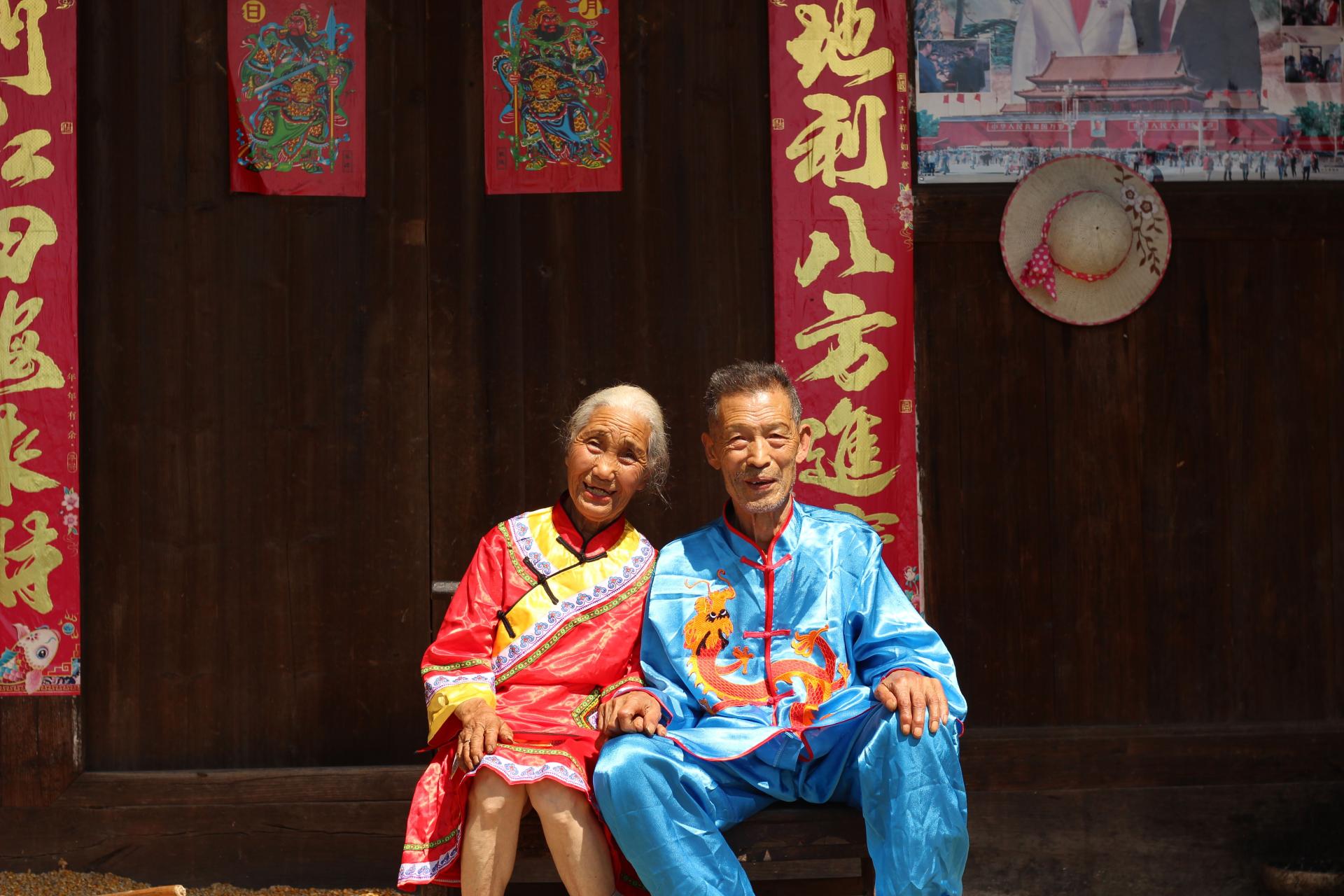 近日,他们在团碑村走访时,发现了两位年过八旬的老人,阳光武爷爷和余嗣菊奶奶,二人结婚已经有66年了, 但如今依旧十分恩爱。看他们如此恩爱,几位大学生便问到爷爷奶奶喜欢对方什么?奶奶害羞的说到:“喜欢他,他什么都会做。”爷爷则说:“她长得好看,喜欢她做饭给我吃,做香肠。”大学生们被他们的爱情故事所感动,了解到两位老人从未拍过照尤其是没拍过婚纱照,便决定为他们补拍婚纱照。