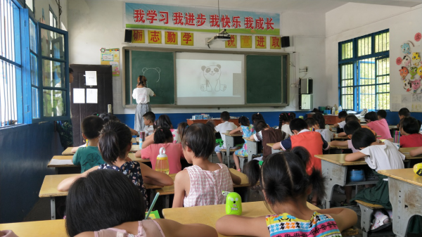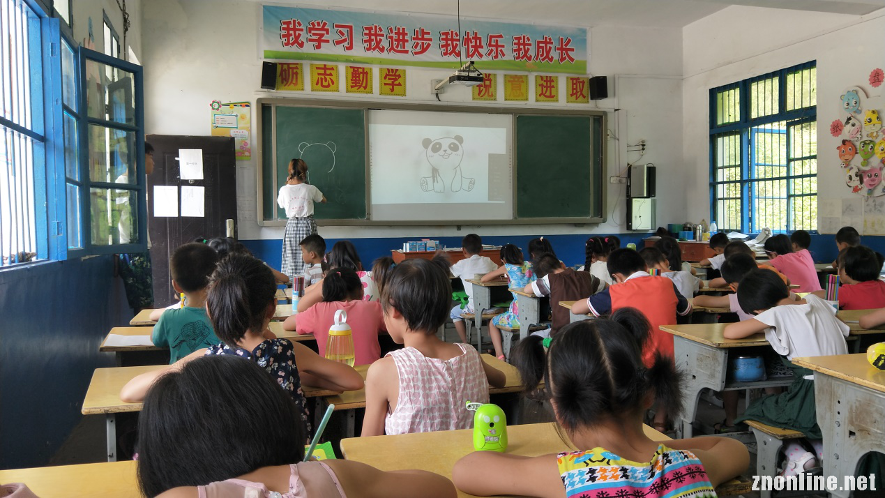 为培养学生们的想象力与动手能力,7月14日上午,该团队在涢阳小学开展了“动物”主题的绘画趣味课程。课堂上,志愿者以PPT的形式,让同学们对大熊猫等动物有一个大致的认识,一只只活泼可爱的小动物瞬间吸引了所有小朋友的目光,“哇,熊猫”“兔子”“慢羊羊”,当PPT一页页翻过时,学生们都热情高涨并大声喊出动物的名称。孩子们都对绘画充满了向往与热爱,热情地投入到绘画的海洋之中。