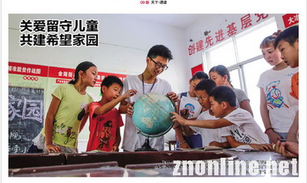 昨日,在大冶市金湖街办焦和村,来自武昌理工学院的“希望家园”青年志愿者在为留守儿童讲解地理知识。