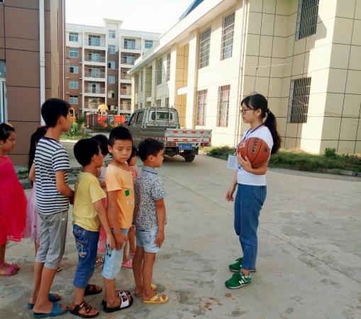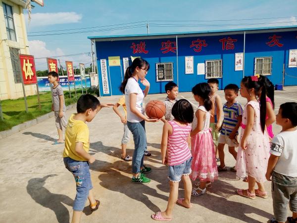 恰巧支教队员张旭在体育选修课时学习过篮球课,因此决定将自己学到的知识传授给这里的孩子,让他们能够更加深入的了解篮球,同时借助篮球给孩子们开展了一系列的特色活动。