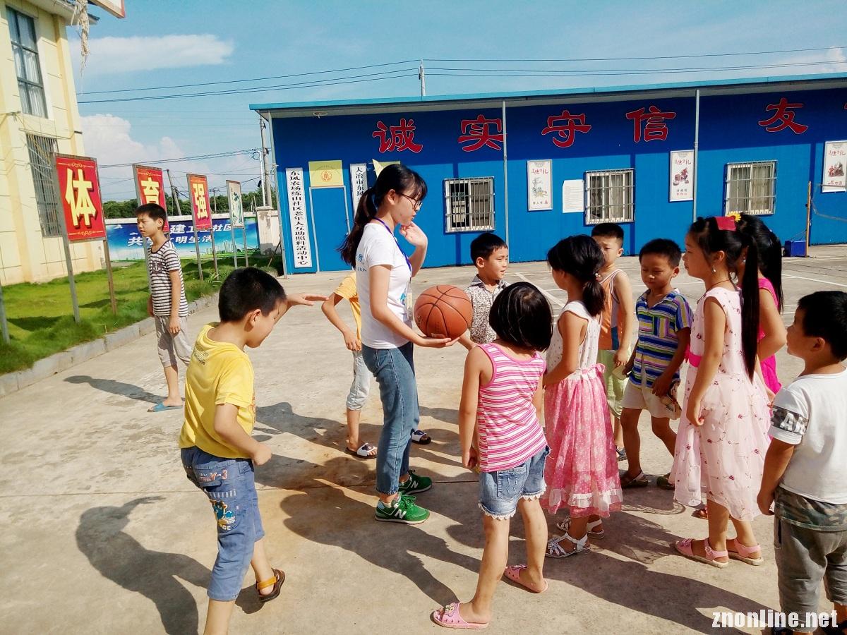 中南在线7月16日消息(通讯员 彭玉娜 周桂香 报道)为了增强孩子们的身体素质,同时丰富孩子们的暑假生活。7月14日,在大冶市东风农场练山社区篮球场上,来自武昌理工学院的支教学生张旭,给当地小学生开展了一节特色“花式篮球课”,孩子们玩得不亦乐乎。