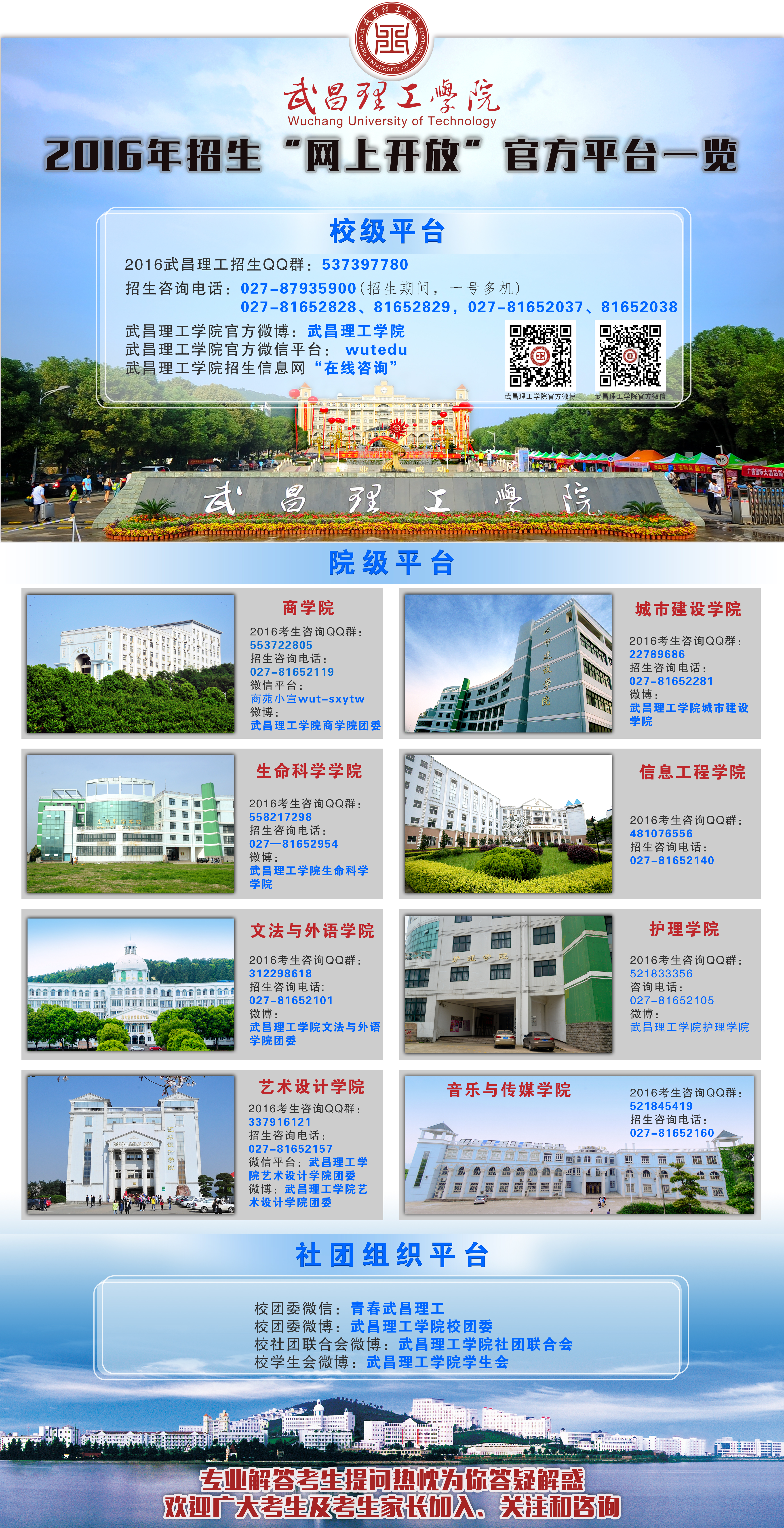 同学们,热忱欢迎你选择武昌理工学院,我们期待与你相逢在美丽的校园,共同承担学校的光荣与梦想。在未来圆梦的道路上,我们将永远和你心在一起、甘苦在一起、奋斗在一起……