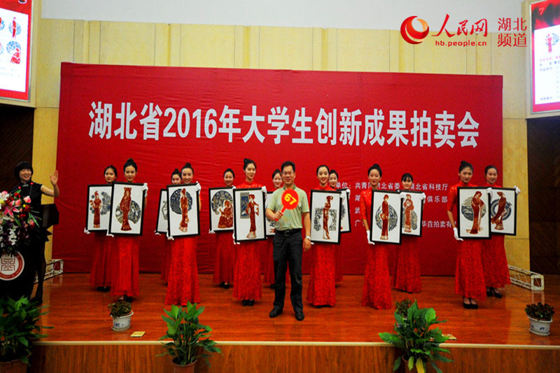 据了解,此次拍卖会面向湖北省各高校2016年在籍在校的大学生(含专科生、本科生、研究生等)征集作品,全省100多所高校选送学生创新作品300余件,拍卖会组委会邀请专家学者对参拍作品进行评审,遴选优秀作品进入拍卖环节。经过两个多月的征集和评审,最终共有华中师范大学、江汉大学、湖北美术学院、武昌理工学院等14所高校的42件大学生创新成果作品进入拍卖环节。