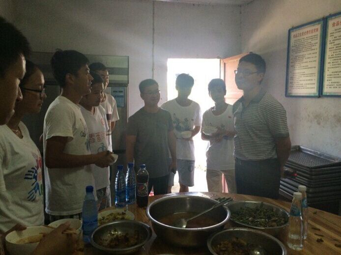 在武穴市大法寺镇刘凤袍小学,小学吴校长亲自接待了王书记,“从大学生们暑期实践活动可以看得出来,武昌理工学院的人才培养理念非常先进,培养质量很好,我们学校希望与武昌理工学院建立长期合作的模式和稳定的合作关系。”在吴校长的盛情邀请下,王书记、南书记和大学生代表们一起吃午餐,队员城建学院陈诚说“虽然天气热、条件苦,但是看到学校领导老师来看我们,我们非常高兴。请学校老师相信我们,我们一定努力开展好暑期实践活动,表现出武昌理工学子追求卓越的精神风貌!”其他队员也畅所欲言,谈出了同学们参加暑期社会实践的收获和感想。