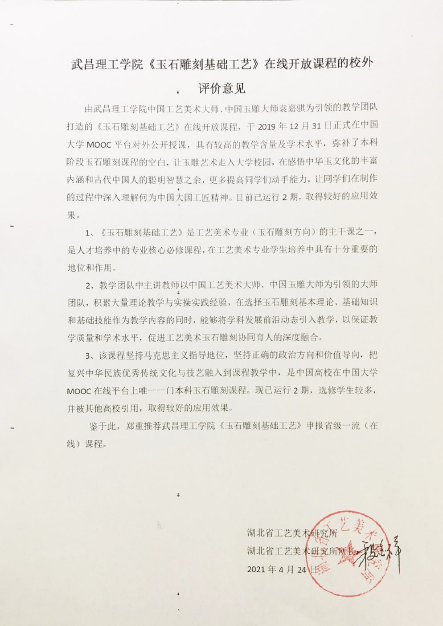 中国大学MOOC《玉石雕刻基础工艺》2023年由教育部获批为第二批国家级一流本科课程。