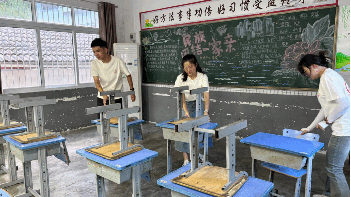 筹备工作是顺利开班的基础,7月3日上午,鹿鸣书声志愿服务队为确保每个环节落实到位,在现有工作的基础上,再梳理、再排查、再完善。队长吴远斌要求队员们要聚焦制度规范、安全排查和课程设计,严格落实家长接送制、场地保险及安全责任书签订,并将安全教育列为“第一课”。为了提供一个良好的教学环境和氛围,队员们在正式教学开课前,多次调试多媒体设备,整理检查每一张课桌椅,擦去灰尘、调整平衡。