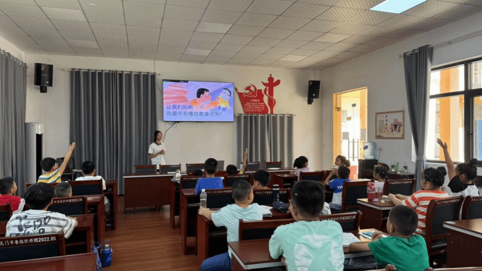 中南在线7月5日消息(通讯员 范帅旗 报道 郑永佳 摄影)为了远离校园霸凌,守护美好青春,7月4日,共青团渔薪镇委员会联合武昌理工学院商学院布谷学堂志愿者协会“心聆益语”筑梦前行团,在渔薪公共服务站成功开展“友好校园大作战,远离霸凌小课堂”主题班会,以爱为舟,承载知识与力量,驶向反霸凌的彼岸。活动通过情景教学、互动体验等形式,帮助青少年识别霸凌行为、掌握应对技巧,为乡村校园安全建设注入青春力量。