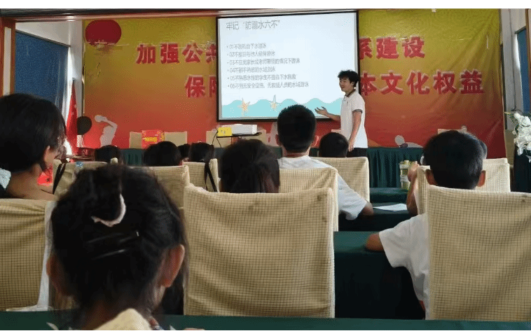 课程以情景模拟开场。支教老师结合真实案例讲解野外游泳的风险,用动画短片展示池塘、河流等危险区域的特征,让孩子们直观理解“远离危险水域” 的重要性。讲解中,小老师特别强调了“六不准”原则,即不私自下水游泳、不擅自与他人结伴游泳等,通过互动问答强化记忆,现场孩子们积极举手回应,课堂气氛活跃。