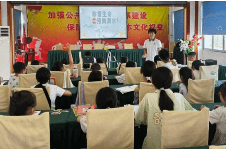 中南在线7月7日消息(通讯员 张祺 报道)为增强儿童安全意识,掌握防溺水技能,武昌理工学院商学院“梅南薪火”党史宣讲团于7月6日在九集镇文化站,为当地30余名儿童开展防溺水教育课程,旨在增强小朋友的安全意识,为孩子们的美好假期保驾护航。
