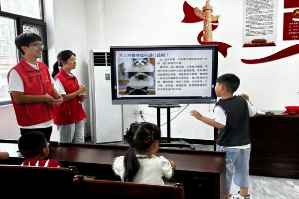 中南在线7月7日消息(通讯员 张力慧 报道)为增进人猫情感纽带,推动猫知识广泛传播,武昌理工学院创意设计学院肖港团队于7月7日走进肖港镇党群服务中心,为当地的小朋友们带来了一堂生动有趣的“猫的历史”美育课程。活动旨在通过寓教于乐的方式,带领孩子们了解猫的文化背景和历史意义,同时激发他们对动物与历史的兴趣。