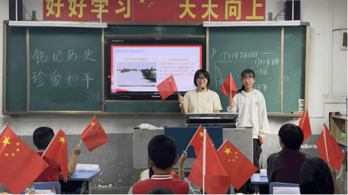中南在线7月7日消息(通讯员 李彬语 江彤 报道 孙姸 摄影)为弘扬爱国主义精神,让青少年铭记历史、珍爱和平,武昌理工学院“灯塔计划”鹿鸣书声志愿服务队于7月7日组织红坪镇“爱心托管班”的学生开展了一场别开生面的“记住七七事变”主题教育活动。活动通过生动有趣的历史讲解、视频观看和互动游戏,带领孩子们走进历史,感受中华民族伟大的团结抗战精神。