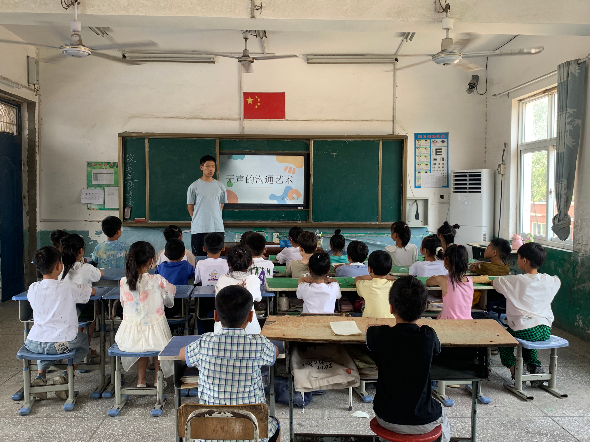 中南在线7月8日消息(通讯员 柳转弟 报道 方雅彤 摄影)为拓宽学生视野,以特殊沟通形式传递知识与温暖,武昌理工学院健康与护理学院“医”路向阳志愿服务队于7月7日在河南省鄢陵县南坞镇第三中心小学开展无声的沟通艺术特色课程活动,为学生们开启通往心灵深处的神秘通道。