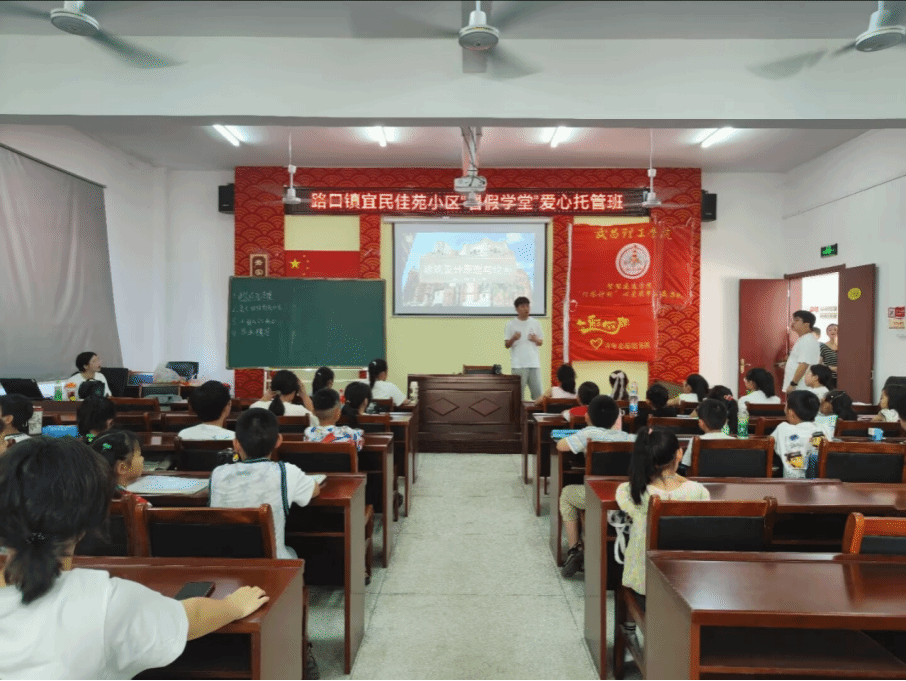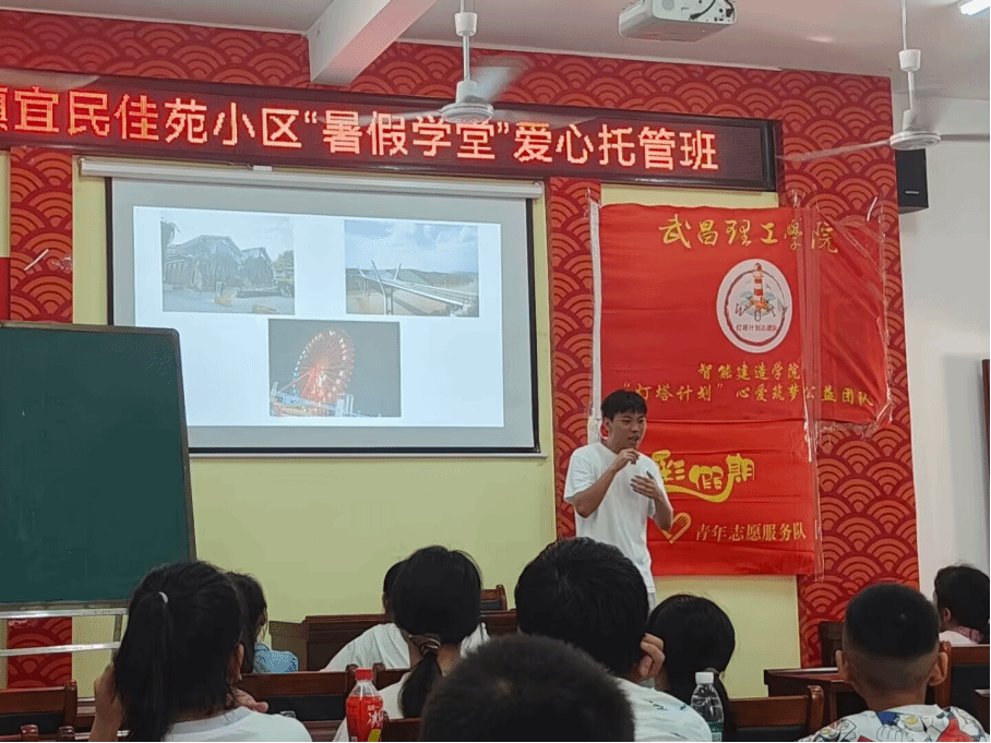 中南在线7月7日消息(通讯员 黄维嘉 段言蹊 报道 谭欣雅 摄影)习近平总书记说过:“教育是强国建设、民族复兴之基。”为深入贯彻落实党的二十大关于教育优先发展的战略部署,7月7日,武昌理工学院“灯塔计划”心爱筑梦公益团队在路口镇宜民佳苑小区“暑假学堂”爱心托管班给孩子们上了建筑特色课、夏天的田野音乐会、心理健康“烦恼课”等特色课程。