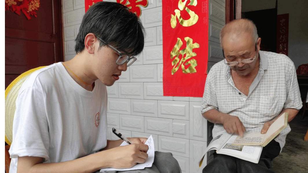 此外,志愿者们还从当地村民黄华啟老先生那里了解到更多信息。黄老先生说道:“当地的房屋虽已不再是吊脚楼的样式,但装饰和结构依然保留着传统土家特色。”志愿者们认真记录,不时就建筑细节发问,黄老先生一一作答,让大家对土家族建筑文化有了更为清晰的认知。谈及当地的历史文化,黄老先生拿出一本泛黄的笔记本,上面记载着村里大大小小的故事,志愿者们深切感受到黄华啟老先生对家乡文化的热爱以及对传统文化传承的重视。