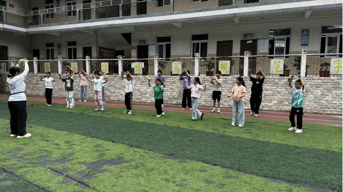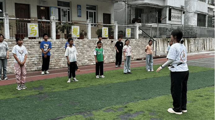 活络功是一种融合了舒缓动作与调节呼吸的传统健身方法,适合锻炼学生身体的柔韧性和专注力。支教队员介绍,最初引入活络功是希望丰富体育课内容,同时帮助孩子们缓解久坐学习的疲劳。