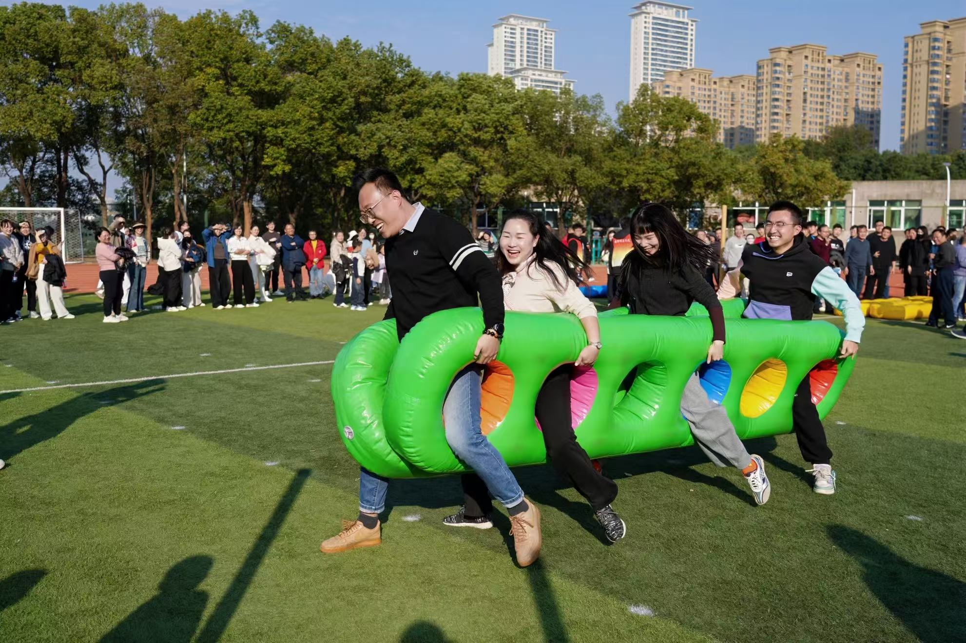 除了竞技项目,李曼书记还积极投身教工组趣味项目,与学院其他教职工并肩协作。在充满欢乐的赛场上,她褪去工作中的严谨,全身心投入到趣味挑战中,和队友们相互配合、默契十足,欢声笑语中尽显团队凝聚力。她的积极参与,不仅为趣味赛事增添了活力,更拉近了与教职工之间的距离,展现了学院领导与师生同乐、凝心聚力的良好氛围。